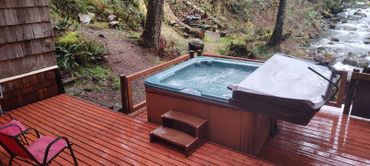 On the view deck, fill your senses with the soothing sound of the water and the wind rustling in the trees, the air so clean you feel as if you could reach out and taste it with the tip of your tongue, the gentle breeze and warming sun, and sound of birds in the trees. The vacation rental deck overlooks 2,000 feet of Index Creek that cascades 25 feet below Harmony Lodge in waterfalls over the rocky creek bottom. Mt. Baring is at one side of the valley, and Mt. Index at the other side. There is an outdoor gas grill to cook on while having fun and enjoying nature. Watch for otters on the edges of the creek, and salmon valiantly migrating up the boulders in the Index Creek. Fish for trout. Explore the rocks at the edge of the Index Creek and see the trout. Float on inner tubes in the summertime, and have fun in the swim holes like Tom Sawyer.